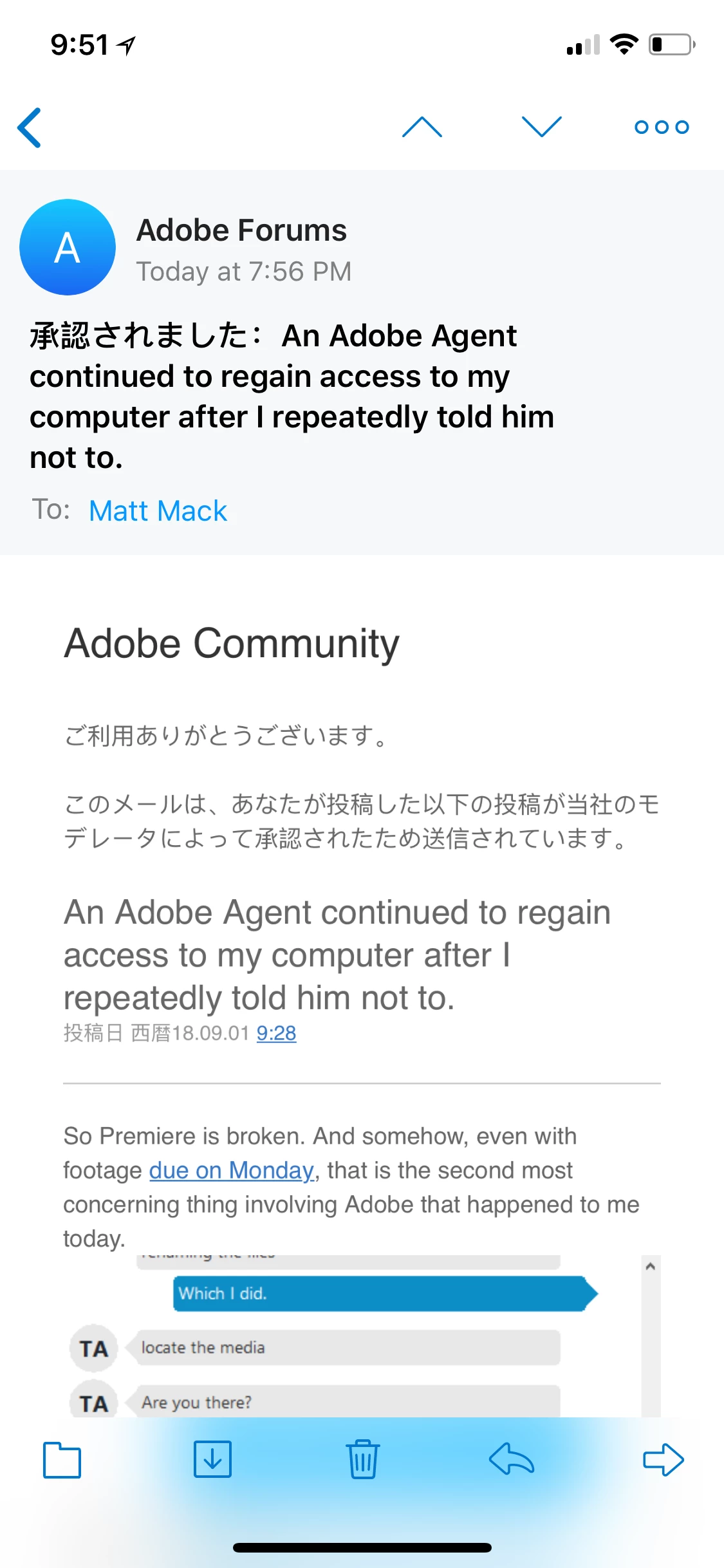 The reason I ask is because, ever since my most recent experience with Adobe Support, I've been getting the most nonsense emails.