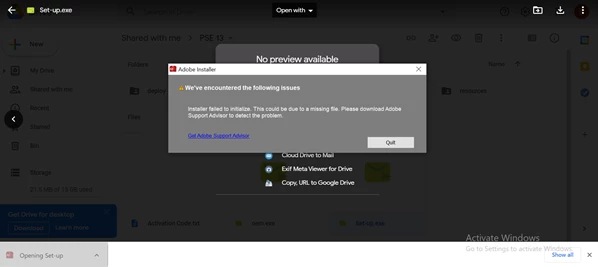 I'm trying to download Elements15 (a subscription provided by my employer). It has been shared with me via GoogleDrive as I am working remotely. When I try to install the software I come up with the following error message: