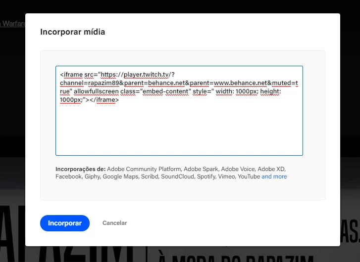 Embed iframe from Twitch to Behance is not working