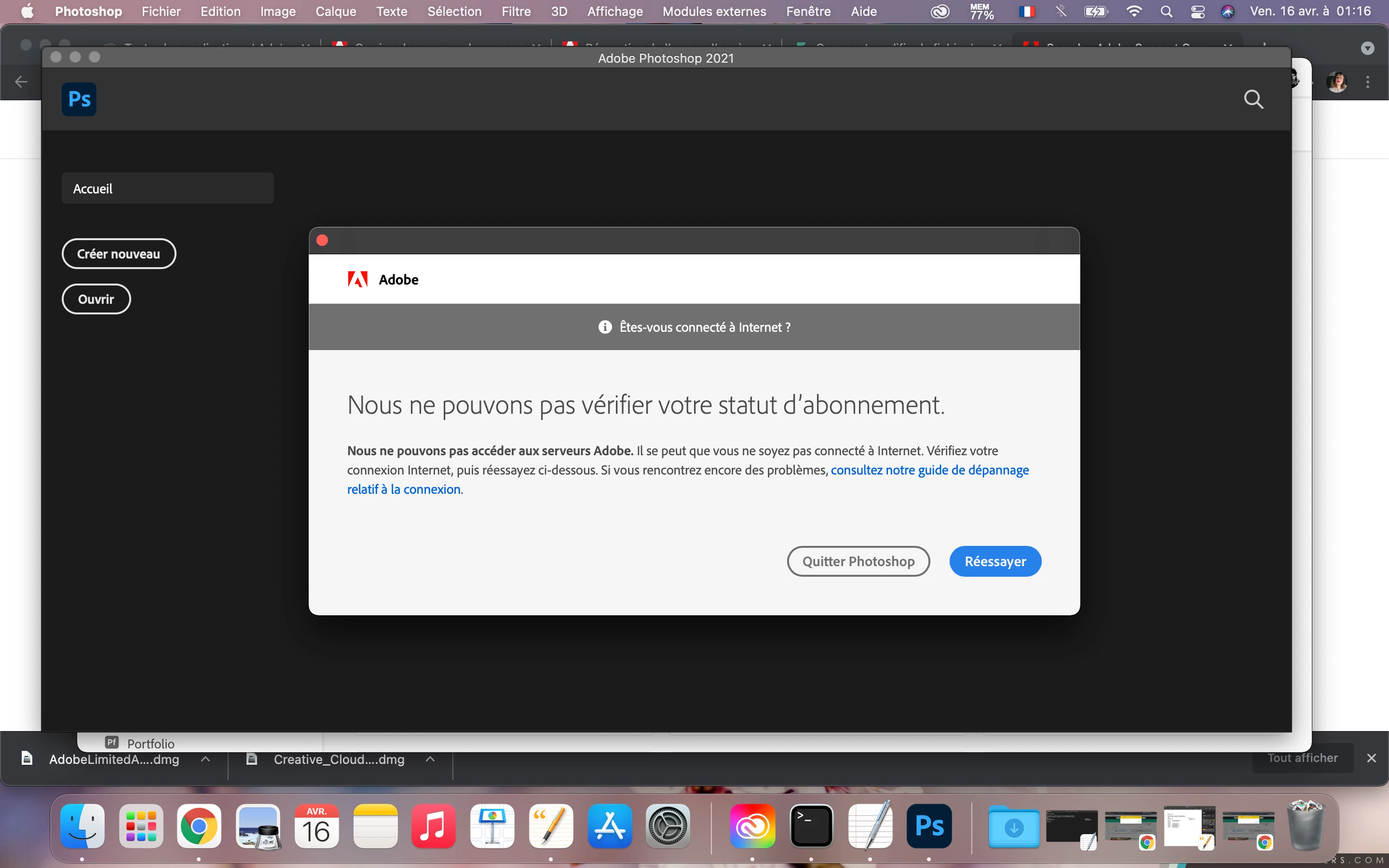 Bonjour, je viens de souscrire à l'abonnement Creative Cloud pour étudiant, et après avoir tout installé, voici le message que les différentes applications me mettent: