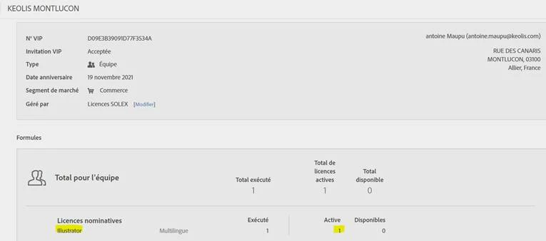 Et cette licence est bien affecté au bon utilisateur dans la console d'administration :