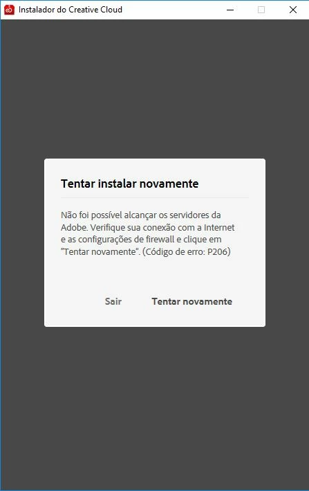 Erro ao instalar o creative cloud