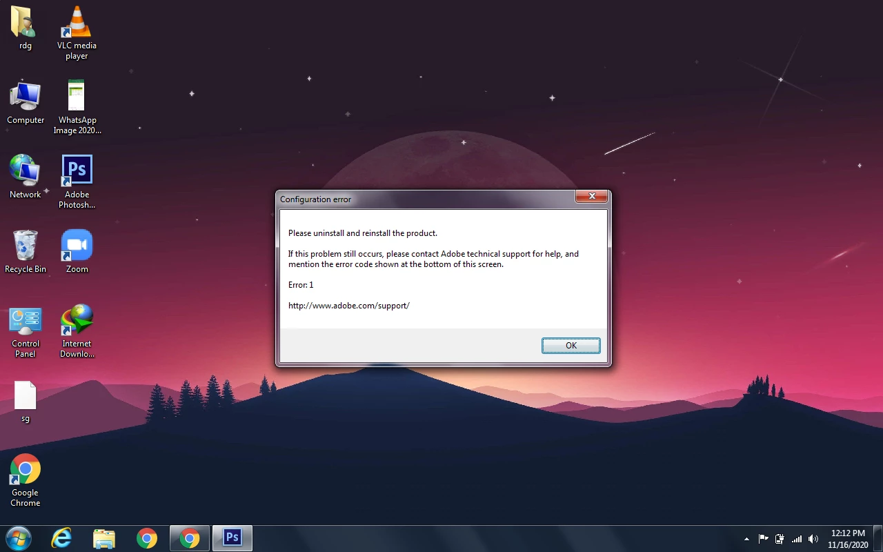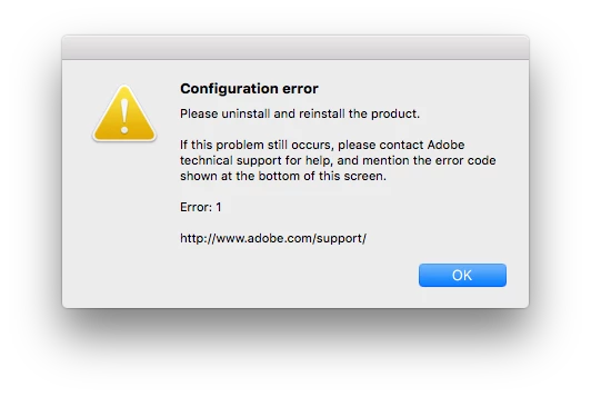 So, I've been trying to deal with this for about 4 days now. Whenever I try to launch Premiere Pro CS6 I get the message "Configuration error Please uninstall and reinstall the product. If this problem still occurs, please contact Adobe technical support for help, and mention the error code shown at the bottom of this screen. Error: 1" A little background, I have 2 hard drives, C: has Windows installed while 😧 is just used for all my storage. I've tried installing it in numerous occasions, I've had some tell me to move files from program files from one drive to another, some to edit the registry, I've even used a registry cleaner (I used registry winner, which probably didn't actually do anything), I've used Revo Uninstaller to uninstall everything related to Premiere Pro. I honestly don't know what to do... The only thin I really have left is just to wipe my hard drive, which I really don't want to do obviously. Any help?