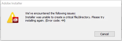 Error 44 when installing Adobe Creative Cloud