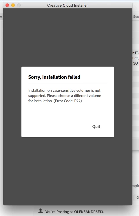 I bought an annual subscription to the ADOBE CREATIVE CLOUD package on the website. Attempts to install it on a personal computer failed. During installation, the system informs about the error code P22 (Installation on case-sensitive volumes is not supported. Please choose a different volume for installation). Attempts were made on mac computers with OS: macOS High Sierra, v10.13.16 and macOS Catalina v10.15.5. Please tell me how to install the purchased software on my computer. If this is not possible (the software product is incompatible with the operating system of my computers), tell me how to cancel the purchase and return your money.