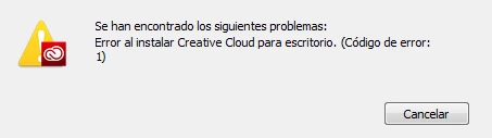 It basically says: We found the following errors: Error installing Creative Cloud for Desktop. (Error code: 1).