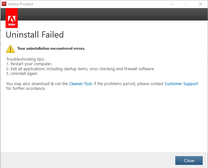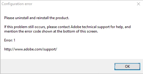 Adobe is not working properly, recieving an Error Code: 1, any solutions?