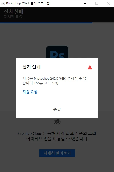퓨퓨린이5FE2ParticipantForum|Forum|4 years agoSeptember 14, 2021Questionerror code 183Forum|Forum|4 years agoSeptember 14, 20211 reply98 viewsplz Installation