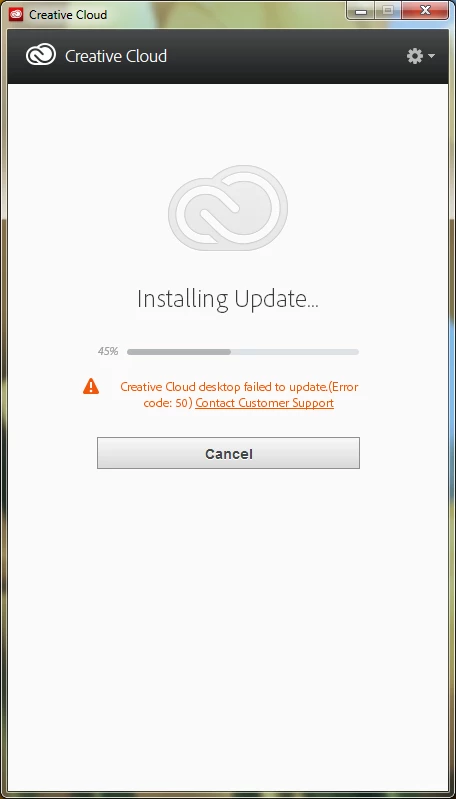 Creative Cloud desktop failed to update.(Error code: 50) Contact Customer Support