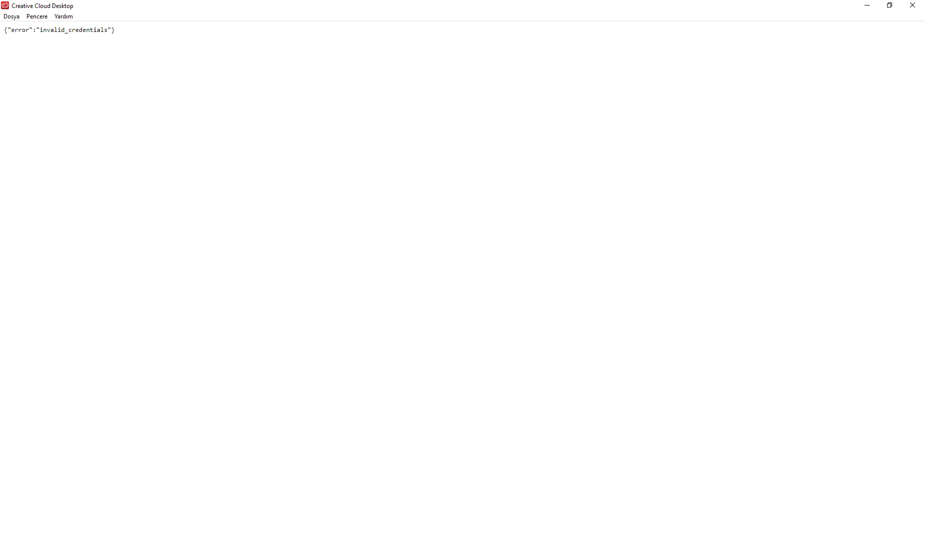 I remove photoshop in creative cloud. but i get error and error is,{"error":"invalid_credentials"}.