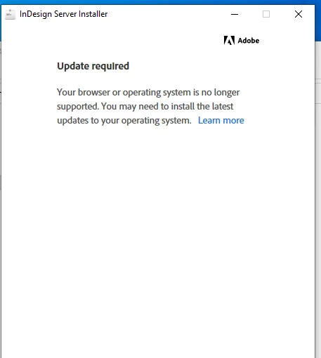 We have Windows 10 (1903) version. But when we try to install InDesign Server 2019 on that machine we get an error