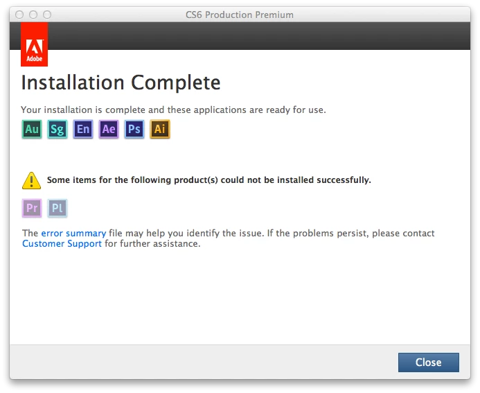 Errors (DW050 DW063 DF027) installing Production Premium CS6 on Mac