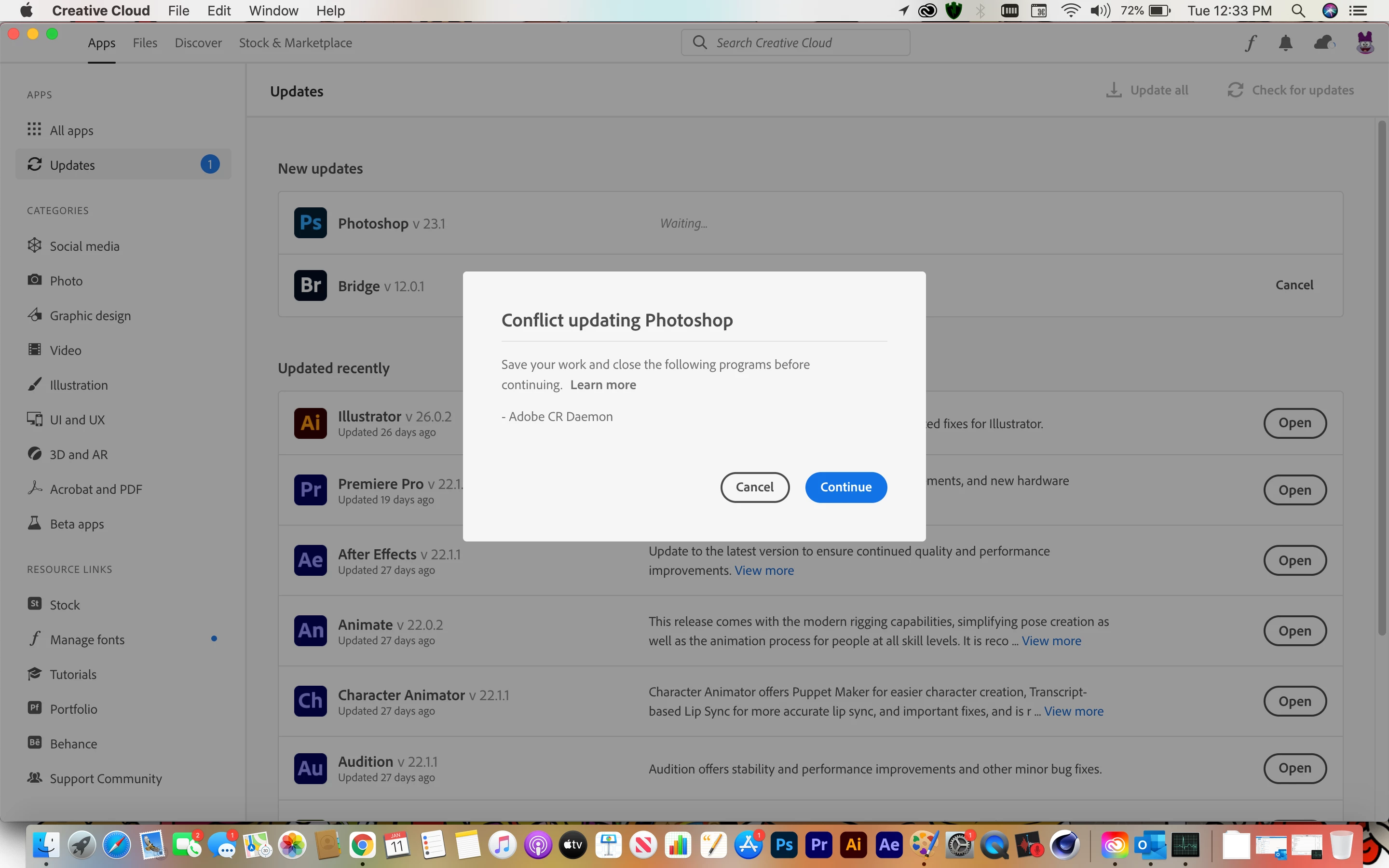 Even after I close Adobe CR Daemon, Photoshop still won't update.