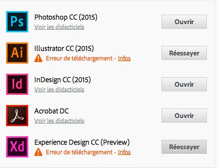 I try to install illustrator CC and Experience Design CC for 3 days now and i always have the "download error" warning.