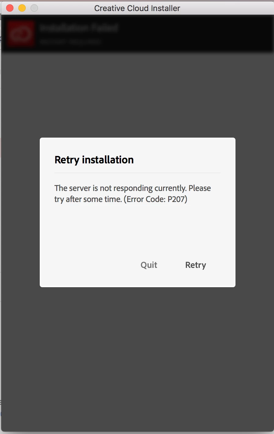 I have downloaded Creative Cloud and Adobe XD but getting the following Error: P207 during the installation. Please help.