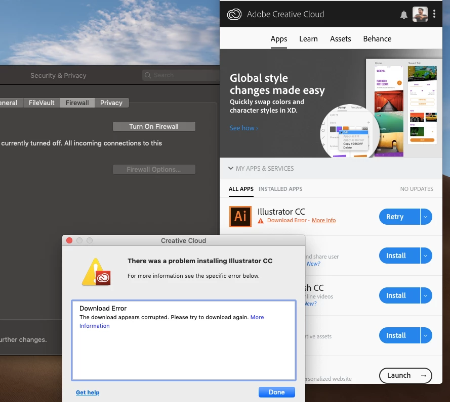 FATAL: Error occurred in download of package (Name: AdobeIllustrator23-Core Version: 23.0.1.540). Error code: '117'
