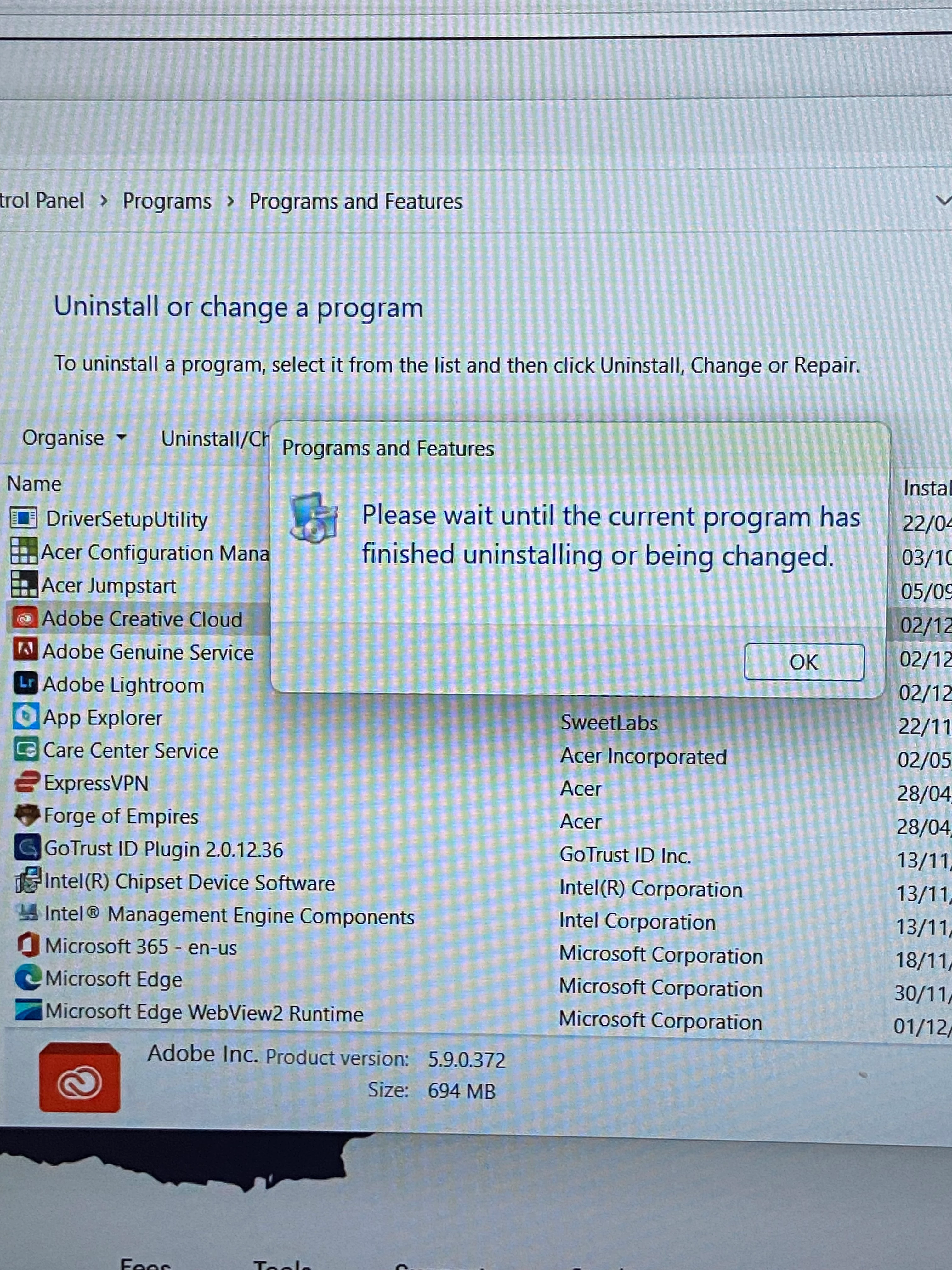 I downloaded Adobe creative cloud but whenever I open it my laptop screen flashes off(black) repeatedly, it appears to crash my laptop. The crashing got much worse when I attempted to use photoshop and the screen kept jumping around. My acer laptop is trying to fix the download from the looks of it(programme is 'being changed'). Has anyone had a similar issue?