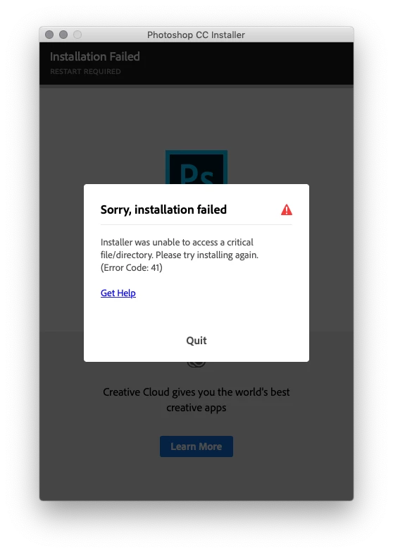 I got the error code 41 while downloading upgrades to PS CC, why?