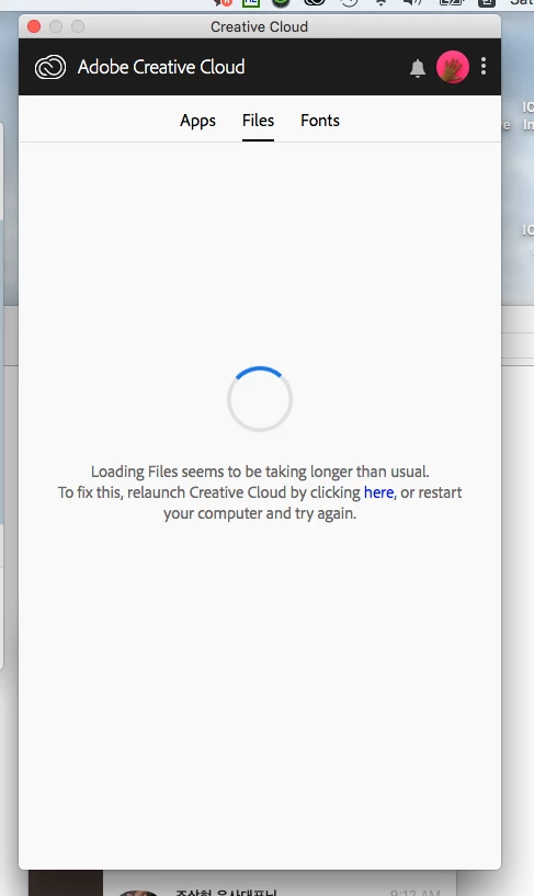 File and Font panel are keep spinning on Creative Cloud desktop app