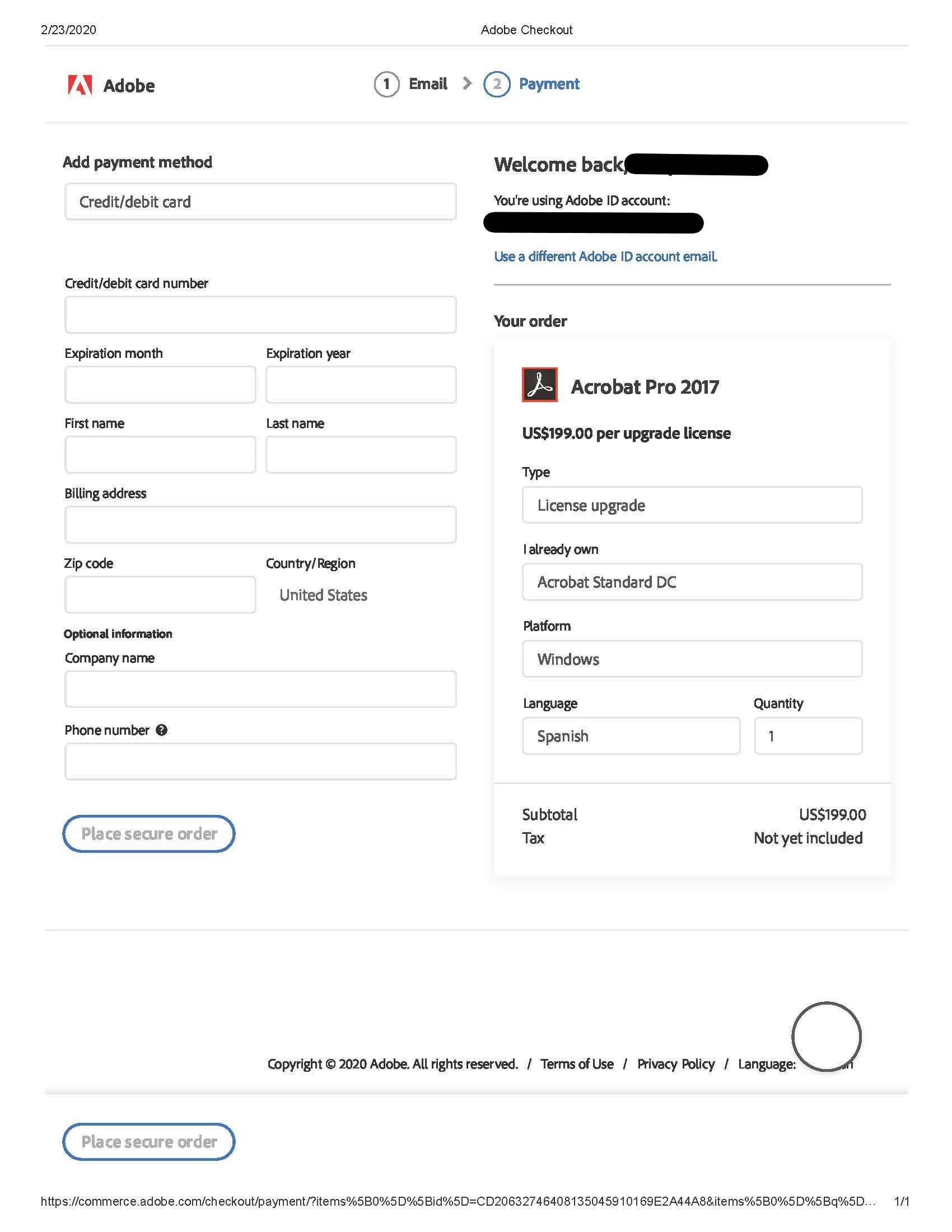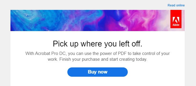 After tooling around the site looking for it, I finally searched Google. I searched Google for 45-odd minutes trying every combination of the words "adobe", "shopping", "cart", "checkout", "return", "adobe.com", and I couldn't tell you how many others. Search queries returned product help, for the most part, but nothing remotely close to what I was looking for-I even opened a few links thinking it might be hidden somewhere. I went back to my email, and used the "Buy Now" link to navigate over to what must surely be my 'cart', right?
