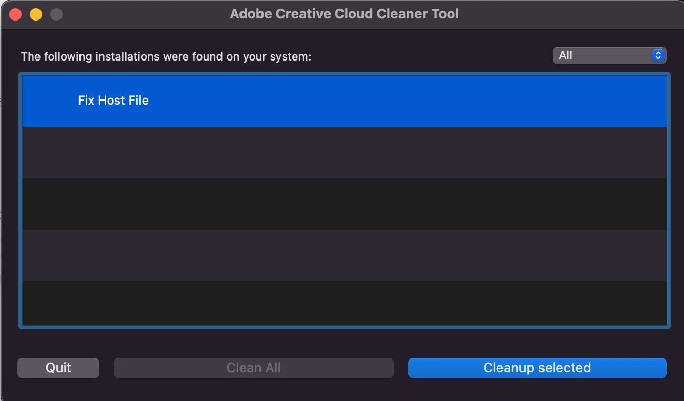 'fix host file' coming up when I use adobe creative cloud cleaner tool