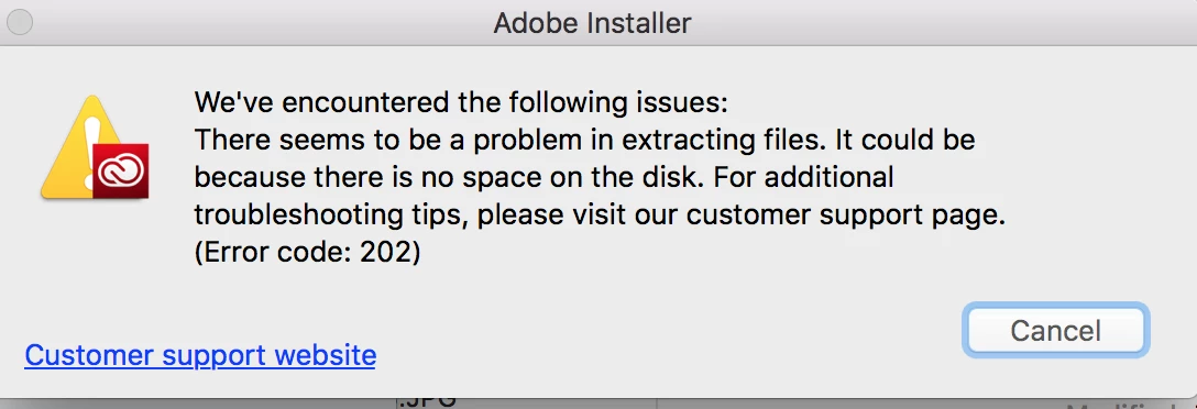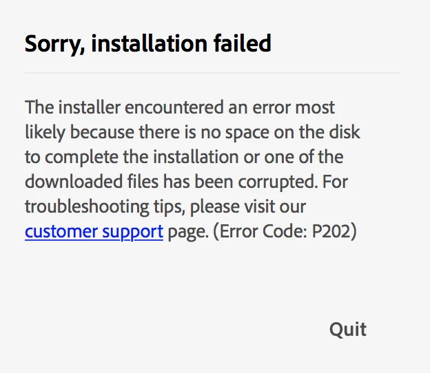 HELP!! Adobe Installation Error 202 - tried all other threads