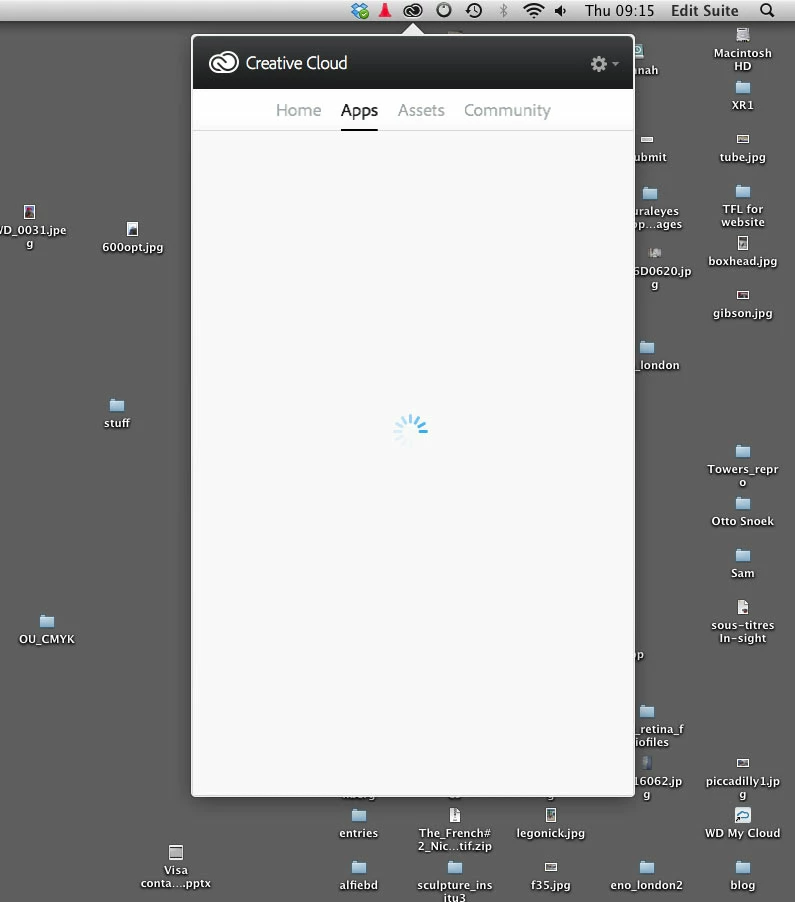 Hi My adobe cloud app tab does not want to load. im not sure what i can do. iv tried restarting my mac and the applicaiton.
