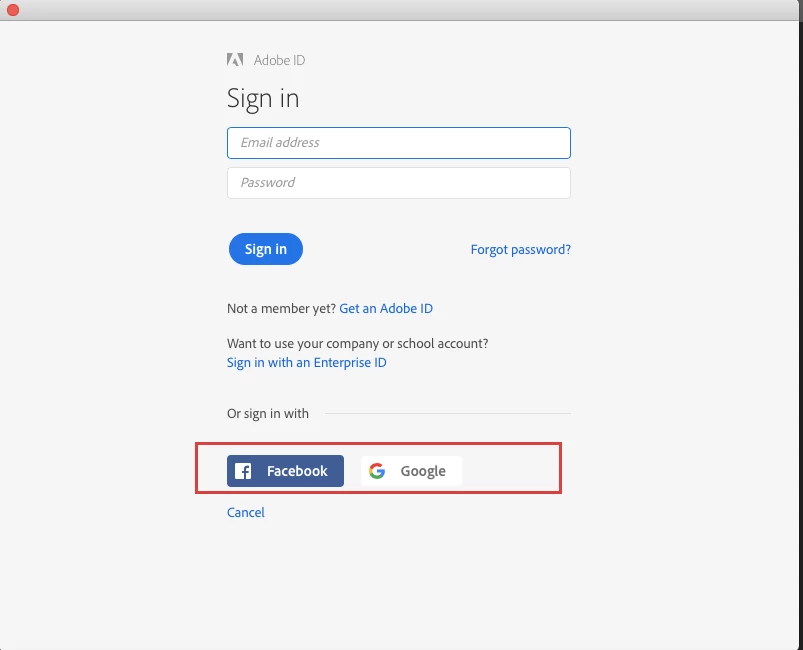 How can I turn off the Social Connectors (Facebook and Google Sign In) within the Creative Cloud apps for Mac ?