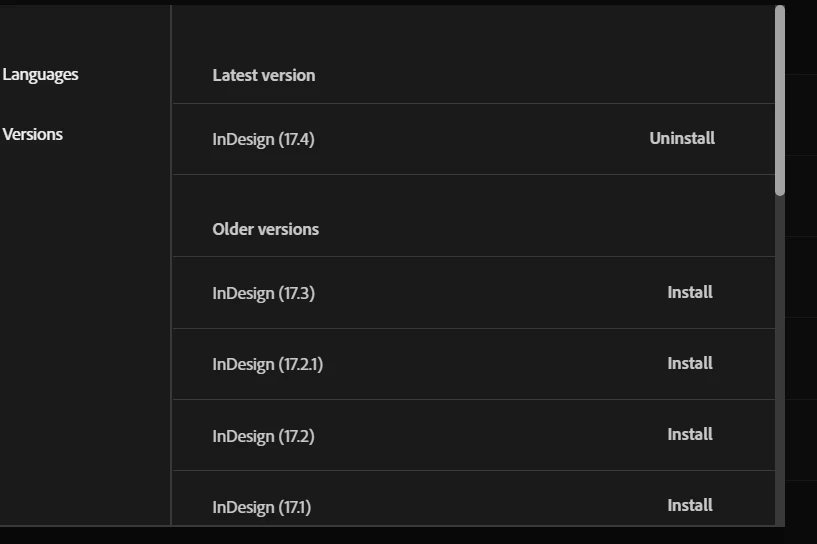 I need InDesign CC 2020 (v15) as my old Mac cannot run anything newer. InDesign started to crash so I unintalled it via the Creative Cloud app but when I went to then install it again, the only version available is the latest one which simply says 'Not Compatible'. There are no little dots to click that reveal older versions so I am stuck.