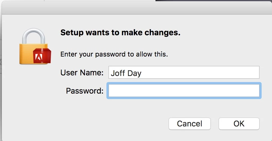 What is not clear is what part of Adobe Setup it is wanting to set up!