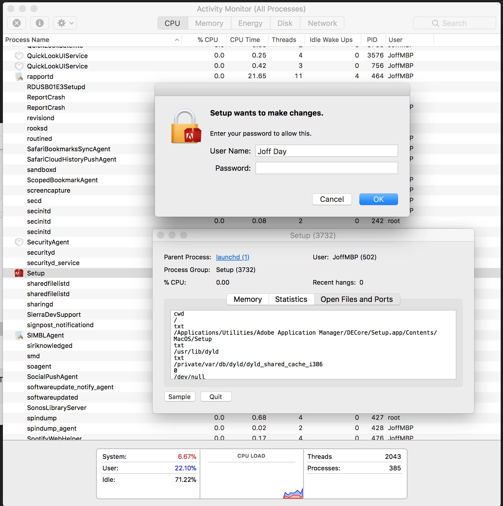 When I check Activity Monitor it shows this which implies it is linked with Adobe Application Manager.