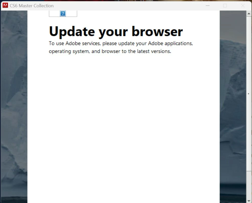 how to avoid the “Update your Browser” issue AASIapp.exe with the CS6 master collection Volume Lic