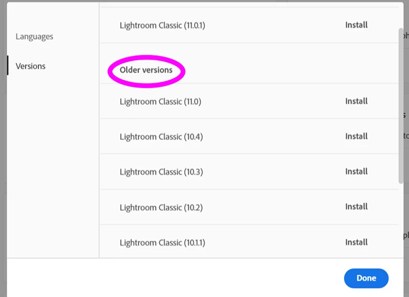 I want to instal LR classic 9, using creative cloud desktop on windows.