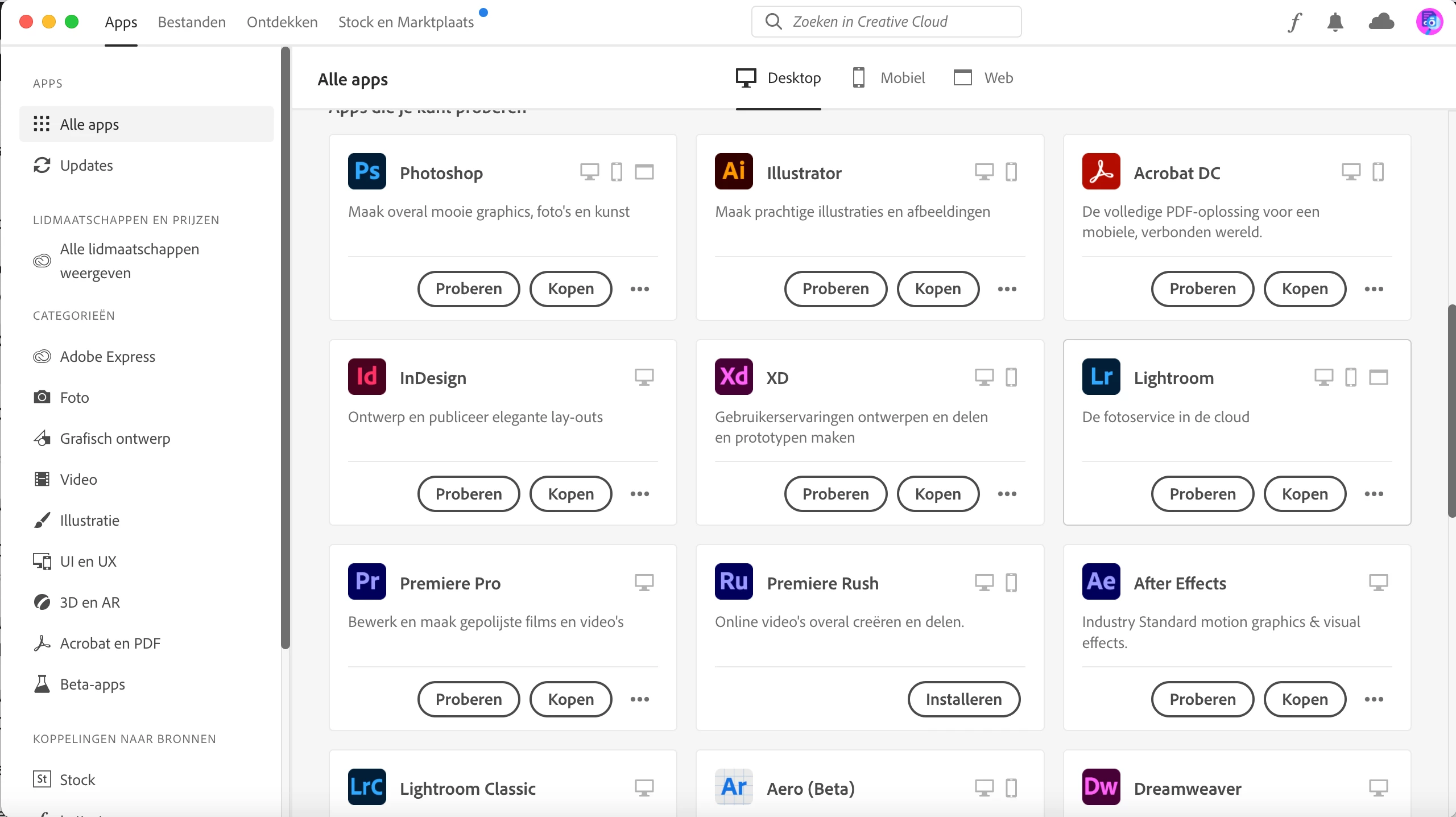 I bought a student subscription for the Creative Cloud apps, but can't seem to download the apps that should come with it. I succesfully downloaded the Creative Cloud app to my Macbook. When I open it, it shows all the apps. But it says 'Try" of "Buy". Not 'Download' or 'Install'.