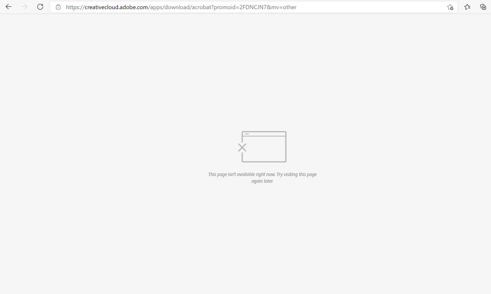 I am trying to download Desktop version of Adobe Acrobat on Windows 10 using Edge Browser but the page is not loading and it's failing. Screenshots are attached.