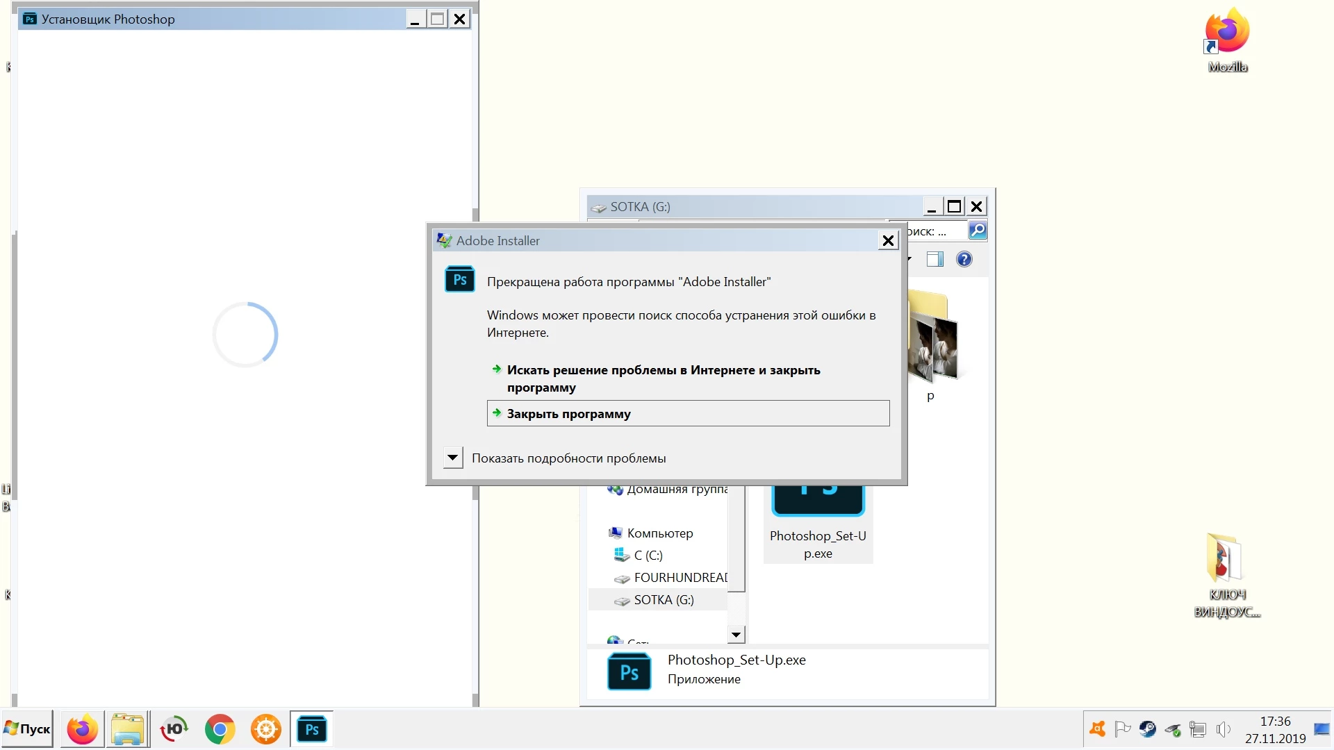 Just after downloading I decided to install Photoshop but this popup appeared. What should I do?