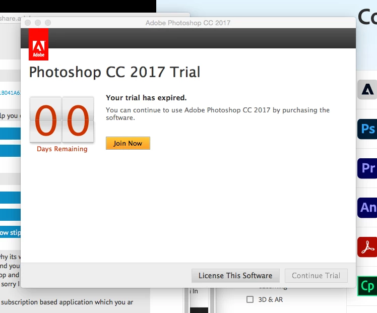 cc 2017 requires a current subscription, and was never sold (legally) as a perpetual license.