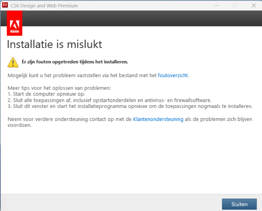 I also download the package 'Design and web' from the Adobe-page. After unpacking, I tried to install as an administrator. After 2% I get the same message 'Installation failed'. What can I do to installe it whitout Problems 🙂