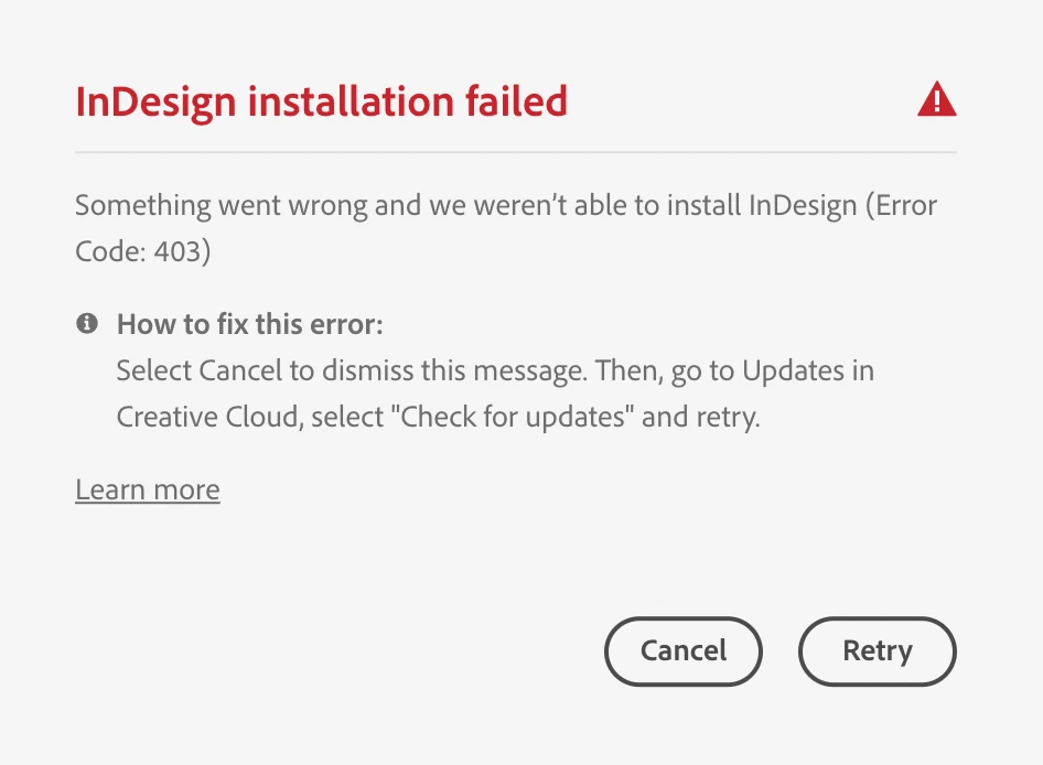 At this point I've tried several times to install all CC Apps on my new MacBookPro M1 (InDesign, Photoshop, Illustrator, etc). Via migration Assistance (but my programs keep on crashing or can't open any docs every single time) and just from scratch. I'm always getting the same 403 error. But the thing is... I can't download any apps via creative cloud... Everytime the same installation error occurs.
