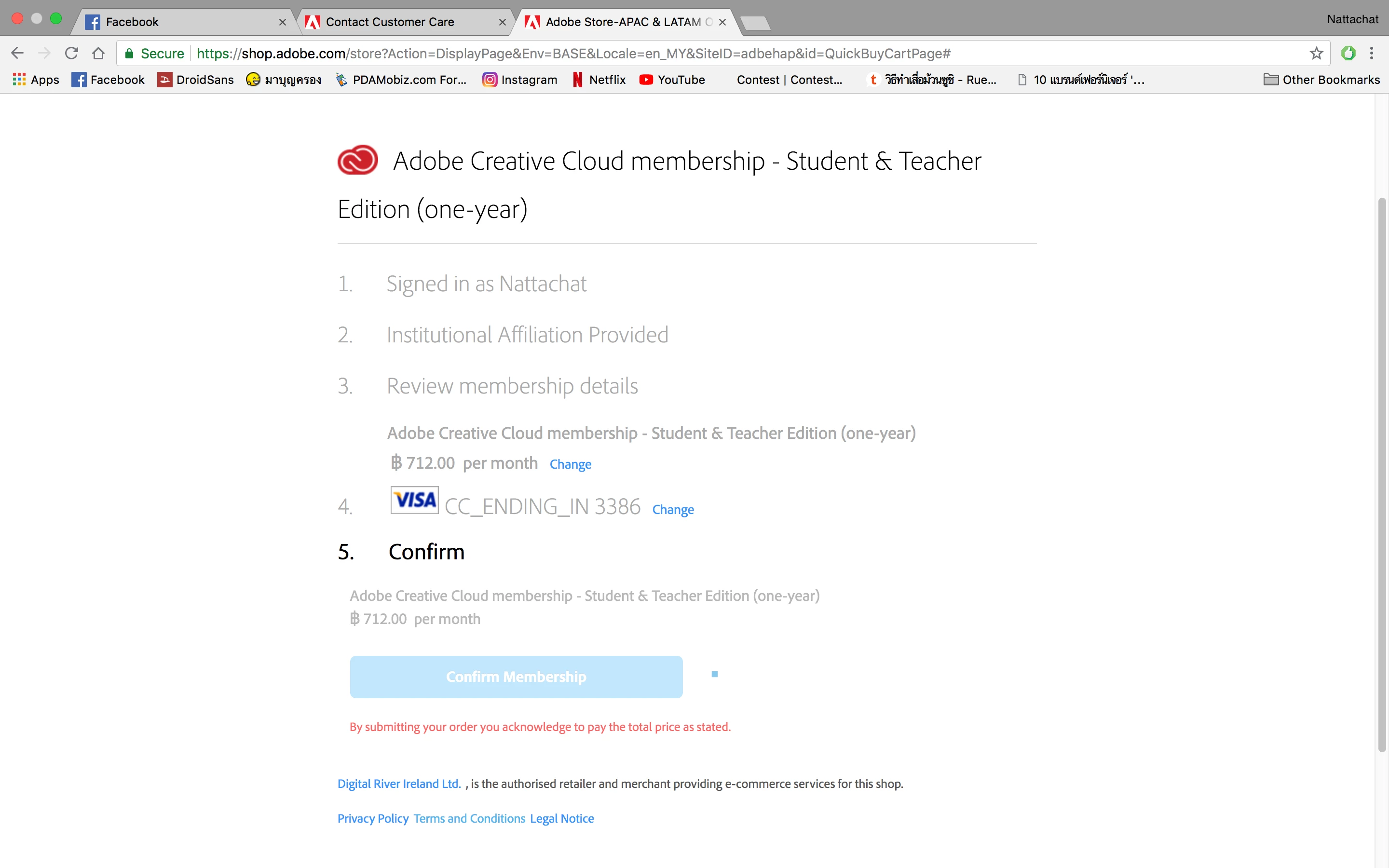 It always keep loading at the 5th step 'Confirm' so I can't press the 'Confirm Membership' button.