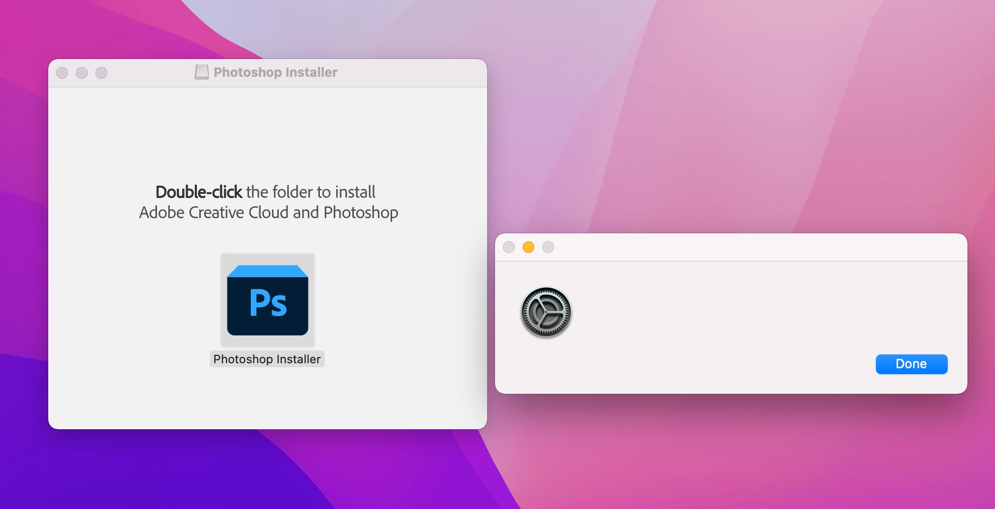I got the Installer for Photoshop and Lightroom Classic from the website. I click on the folder as prompted -- and the notification is blank.