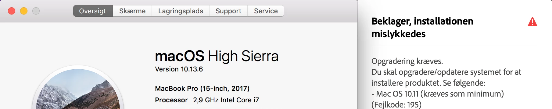 Installation stops with errorcode 195, saying minimum requirement is Mac OS 10.11, but I am (as already stated) on Mac OS 10.13.6.