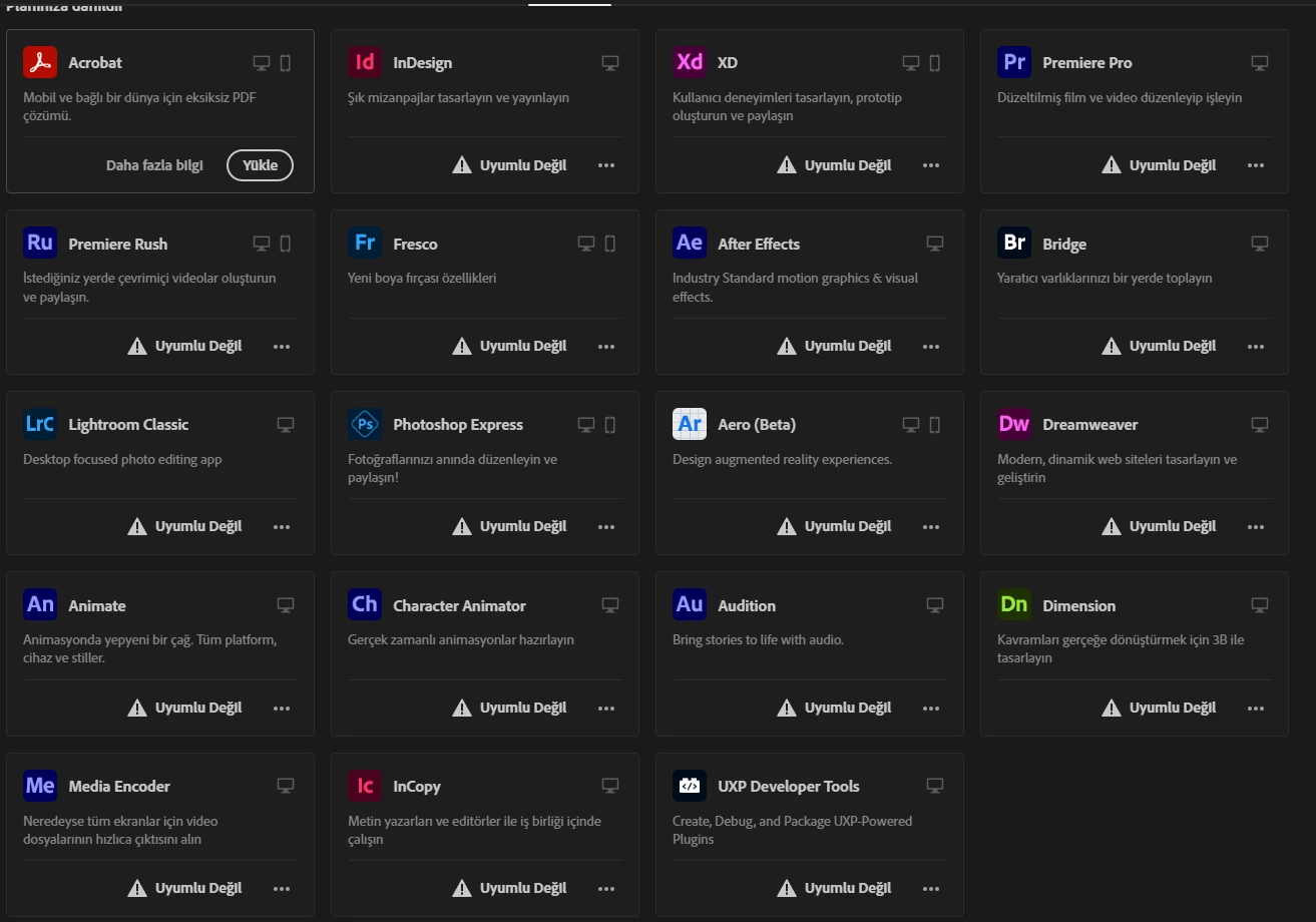 I get the error that all Adobe programs are not compatible. I am using the latest version of Windows 10.