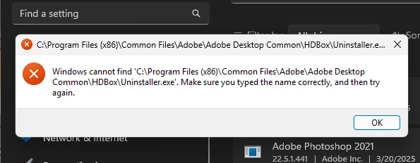 so basically years ago, I uninstalled adobe, but I did it the wrong way and I get this when I try to get rid of it... any way on saving this? is there a tool I can use?