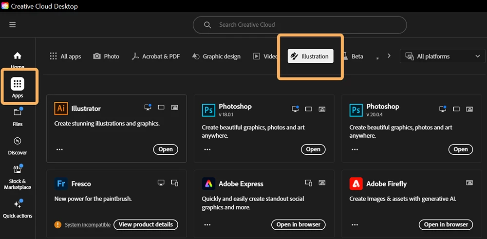 Hello, I have the "Education" license (Student and Teacher) for Creative Cloud. I wish to install the desktop verison of the Illustrator App, but this option is not even shown when I log in to the Creative Cloud desktop. Instead, I see "Illustrator (Beta)" with an option to open in a browser. I am not sure why this is, can someone help? Thanks.
