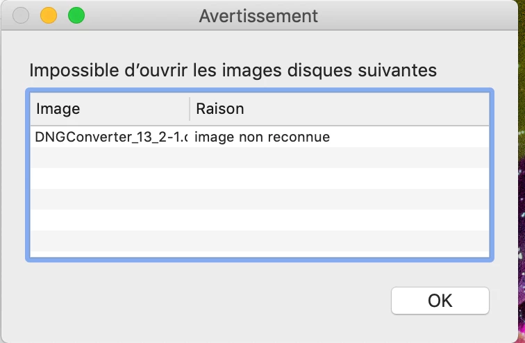 Bonjour, après telechargement de DNG Converter pour ios, celui -ci ne veux pas s'ouvrire et m'indique: