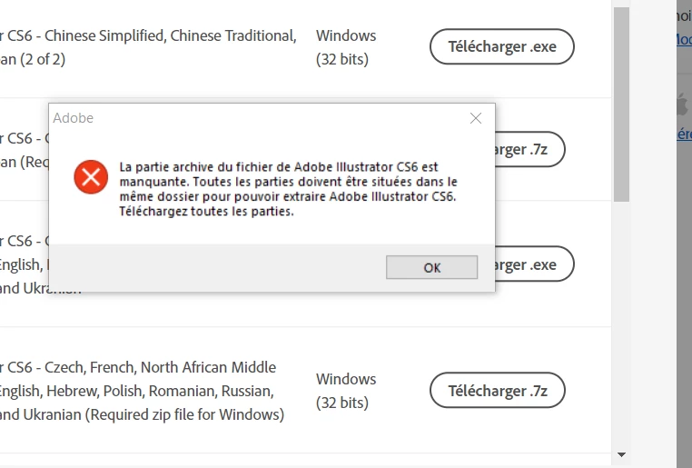 impossible de reinstaller adobe CS6/ pb downloading adobe illustrator CS6
