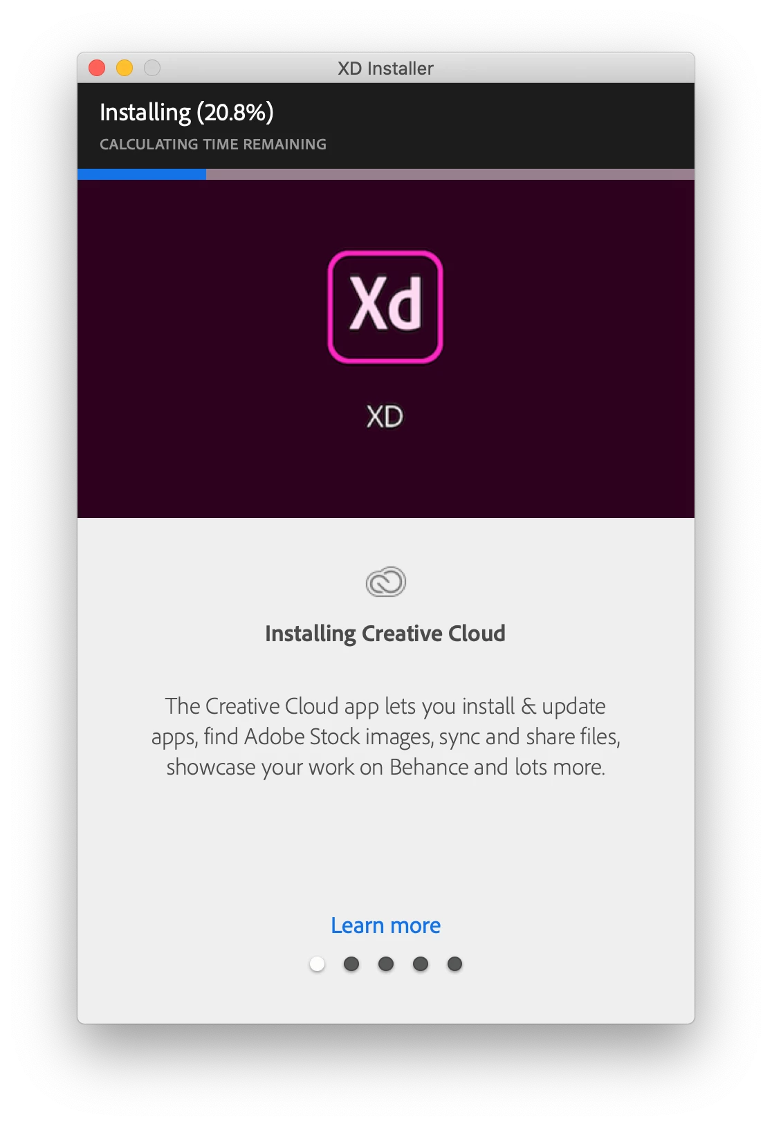 I'm trying to install the free Adobe XD application on my MacBook 15 from 2019 with MacOS 10.15.1.