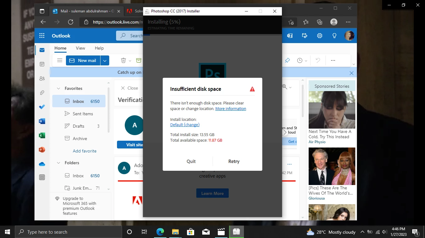 I have 200GB on my C drive, 129GB on my D drive, E drive which is the new drive have 2.4TB space, there's more than enough space on every disks I have. But it still saids insufficient disk space.