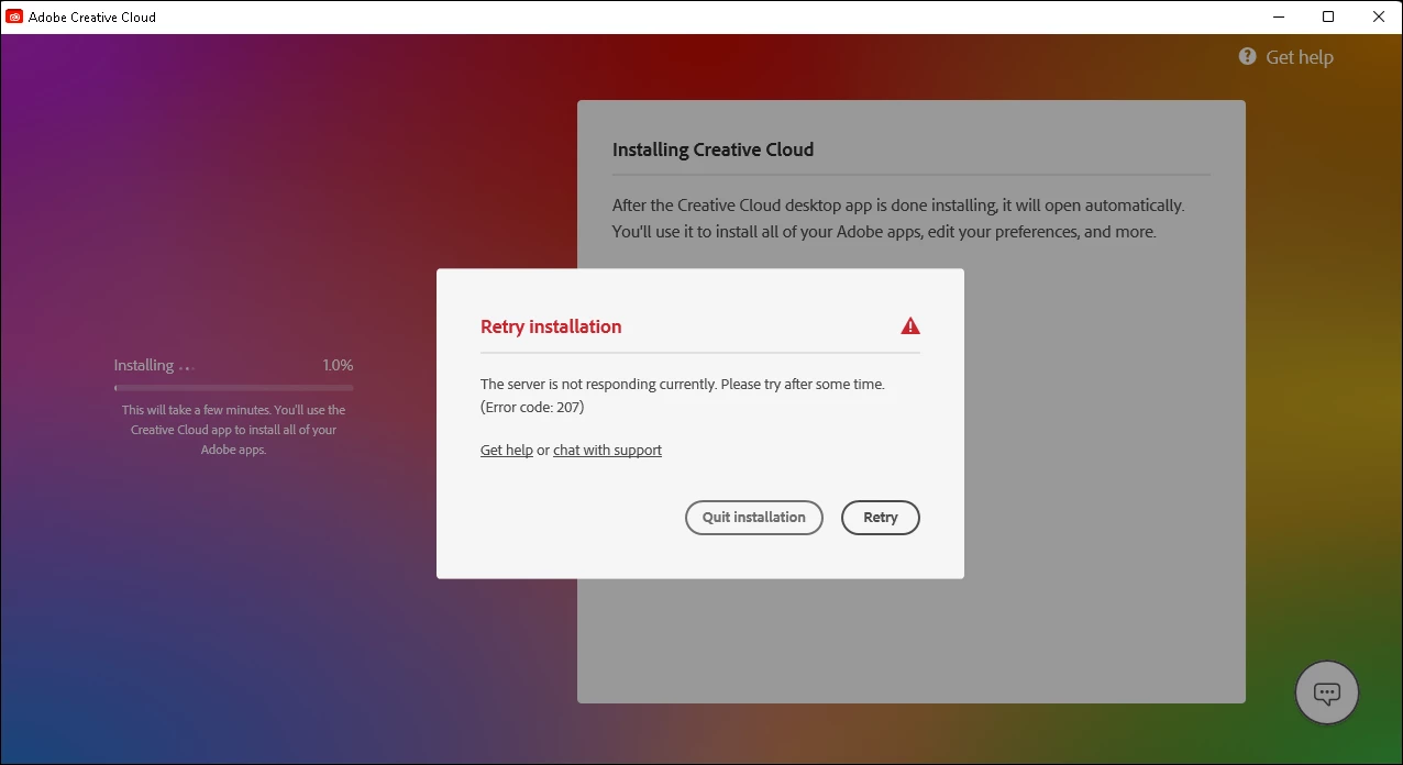 Installation error for Adobe creative cloud desktop manager